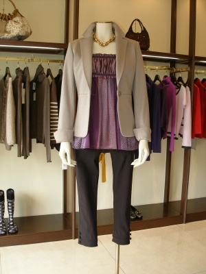 甘いイメージのチュニックもテーラードジャケットを羽織ればキリリと!エレガンス度70%、フェミニン度30%。