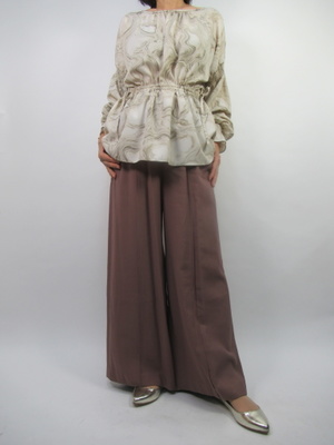 上下ともトロみのある生地で着やすさ重視です。トレンディなトップスでこの秋注目のコーディネートを!スタイリッシュ度70%、カジュアル度30%。