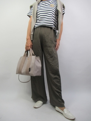 今回はテロテロイージーパンツがとても人気。デイリーが中心になるコーデでも少し艶のあるキレイ目なパンツを着崩してカジュアルもお洒落に着こなしたい!アクティブ度60%、スタイリッシュ度40%。