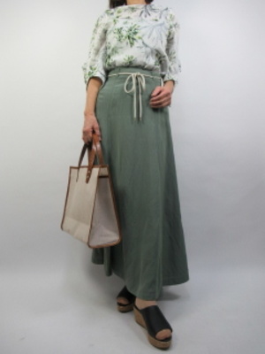 ブラウスもスカートも麻素材を使った春から夏のカジュアルコーデ。カーキをベースのナチュラルないろも手伝ってデイリーにふさわしいコーデになりました。ボタニカル柄のブラウスが新鮮ですね!アクティブ度100%。