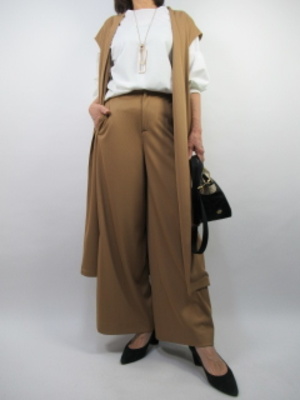 アンサンブルになるセットを白のカットソーでおしゃれなスタイリッシュコーデ。。落ち感のある生地が体に馴染んで大人っぽさを演出してくれる!スタイリッシュ度70%、エレガンス度30%。