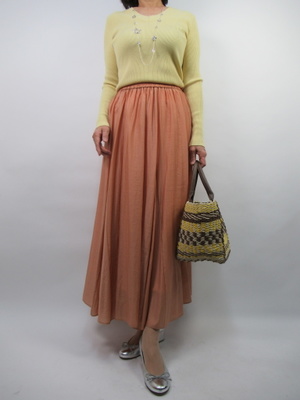 春から夏はキレイ色をふんだんに取り入れて、明るい気分で過ごしたい。シンプルなフレアスカートとリブニットでも色で遊ぶだけで軽やかなコーディネートになる!フェミニン度60%、カジュアル度40%。