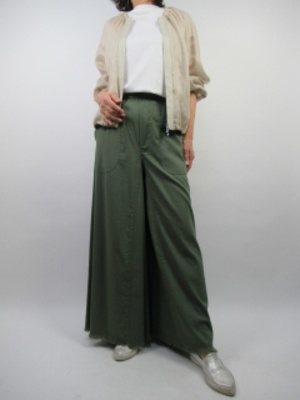 パンツとスカートの全体のスカーチョはデイリーコーデにとても重宝。着やすくてそれでいておしゃれな一着。外出には日よけ防止にうす手のブルゾンをチョイス!アクティブ度100%。