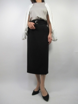 黒とグレーのモノトーンの色合わせ。全体にベーシックなトーンで組み合わせて大人っぽさを出す。タイトスカートでより女らしく大人のエレガントなコーデに仕上げて!エレガンス度70%、フェミニン度30%。