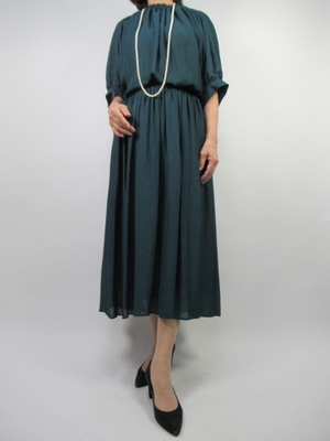 単品で使えるブラウスとスカートをセットにするとお出かけファッションとしても通用するコーディネート。色は秋を感じるブルーグリーンのシックな色で組み合わせをしてみました!エレガンス度80%、フェミニン度20%。