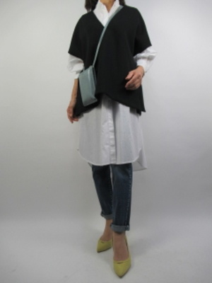 たっぷり感のベストにはロングシャツでレイヤードに着こなすと今風になり、すごくオシャレ感が増す一着です。細身のデニムがよく似合うコーデ!アクティブ度100%。