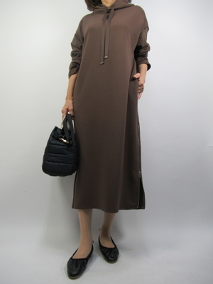 一枚で形になるワンピース。それもカジュアルなパーカタイプはオシャレ普段着に欠かせない一枚。スリットはファスナー使いなので着こなしが楽しめる!アクティブ度100%。