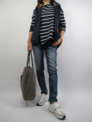 冬の前にちょっと羽織が欲しいとき、とても重宝なのがベスト。配色のオシャレなダウンベストとデニムでコーデ!アクティブ度100%。