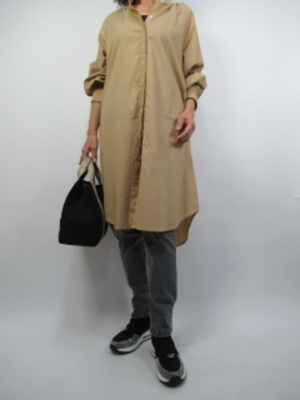 ロングシャツ+デニムスタイルはカジュアルデイリーには欠かせないアイテムです。羽織にもなるシャツをざっくりデニムに合わせてみました!アクティブ度100%。