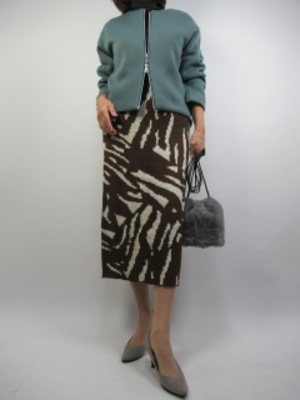 ニットのタイトスカートにシンプルなタートルニット上品な大人のエレガンススタイルが完成。羽織を少しスタイリッシュなコクーンタイルをチョイスして大人のお出かけファッションに!エレガンス度60%、スタイリッシュ度40%。