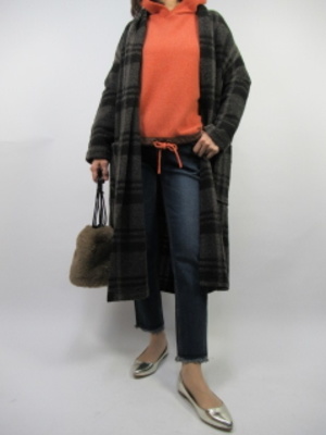デイリーは特に着心地重視。エアリーなチェック柄のコートはさっと羽織れてとてもラフな印象に。インナーに明るいオレンジを差し色にして普段のおしゃれもワンランク上のおしゃれにコーデ!アクティブ度100%。