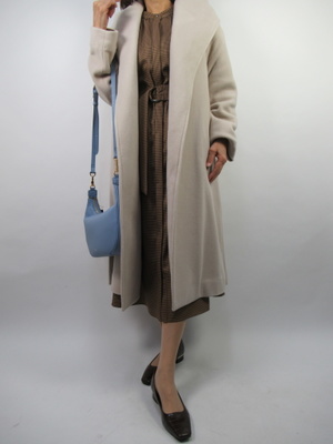 ワンピースは何かと便利なアイテム。ベルトでウエストを絞るメリハリが出る上品な一枚。厚てコートがあればお出かけにも重宝なエレガントスタイル!エレガンス度60%、フェミニン度40%。