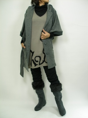 ボリュームたっぷりのガウンジャケットだと体型カバーしながら手足を華奢に見せられます。パンツは細身をチョイスして!スタイリッシュ度60%、アクティブ度40%。