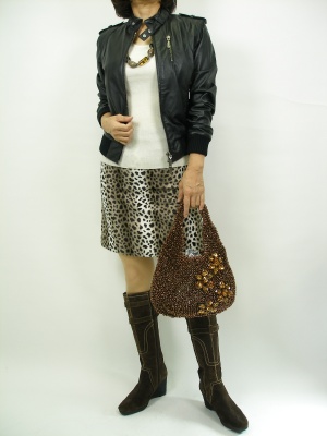 レザーのライダースジャケットはこの冬トライしてみたいアイテムです。上品ニットとスカートで、ハードにしないのが今の気分!スタイリッシュ度90%、エレガンス度10%。