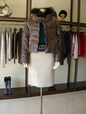 クラシカルなデザインがキュートなダウンウエアをタイとのスカートでシンプルに合わせてみました!エレガンス度70%、スタイリッシュ度30%。