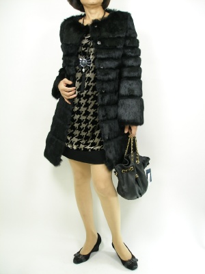 ゴージャスなファーのコートはミニワンピースで若々しさを出して!エレガンス度100%。