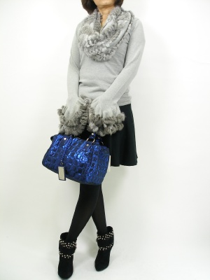 袖口とネックウォーマーとして取り外せる。襟元のファーがとてもゴージャスで可愛い。ミニスカートでキュートさをアピール!フェミニン度80%、エレガンス度20%。