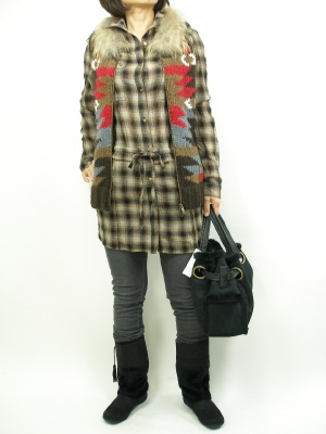 チェックのシャツとカウチンベストでアメカジに。体となデザインを選ぶとカジュアルすぎません!アクティブ度90%、スタイリッシュ度10%。
