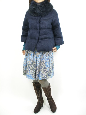 ボリュームファーが、リッチなダウンを花柄スカートでガーリーに。一味違う自慢できるダウンジャケットです!フェミニン度90%、アクティブ度10%。