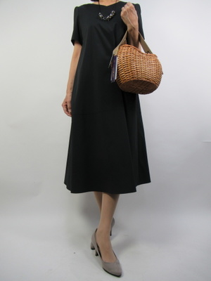 (Aラインのテント型ワンピース)胸元から裾に広がりのあるボリュームたっぷりのワンピース。襟元やお袖はいたってシンプルなので裾広がりが特に気にならず逆にとてもエレガントなシルエットの上品ワンピース。