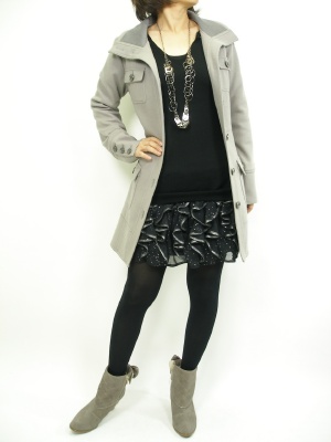 スタイル良く見せてくれるシンプルなコートは冬に欠かせません。シックなカラーでまとめればミニスカートも大人っぽい!スタイリッシュ度80%、エレガンス度20%。