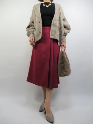 (タイトのデニムのスカートで甘辛コーデ)タイトスカートもデニム生地だととてもカジュアルなイメージですがトップスにエレガントなファー付きカットソーを合わせればぐっとオシャレ度がアップしますね。