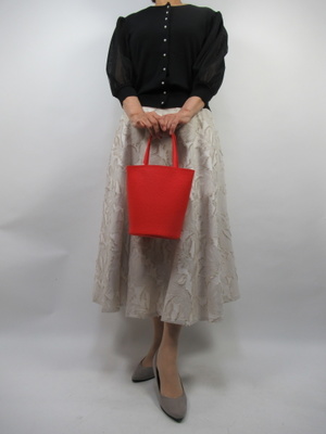 (白×黒の清楚なコーデ)Aラインスカートとふんわり袖のニットカーデのシンプルな組み合わせは清楚な中にエレガントできちんとしたお出かけコーデになります。