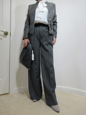(ソフトワイドなパンツはこの秋注目のシルエット)ワイドパンツも太からず細からずのシルエットがこの秋流行ですね。トップスはコンパクトなジャケットをチョイスしてスタイリッシュな装いに。