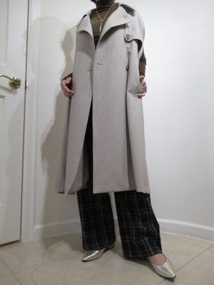 (コートポンチョを着る)丈の長いポンチョはおしゃれな秋のコーデに加えたい一枚。チェック柄のパンツでスタイリッシュに決めたポンチョスタイル。