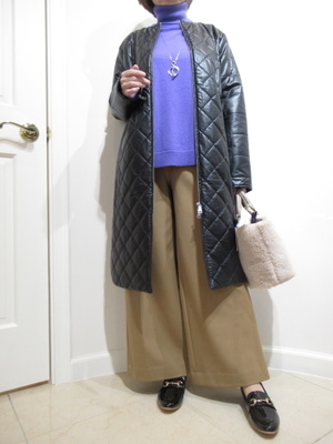 (黒のコートでスタイリッシュに)合皮の黒のコートをテーパードパンツでさらりと合わせたONスタイルコーデ。通勤などにコートの出番も近くなって来ますね。