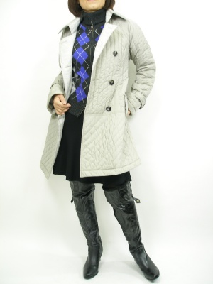 軽いキルティングコートはデイリーに使いたい。こんなコートタイプなら通勤服にも合わせれますね!スタイリッシュ度80%、アクティブ度20%。