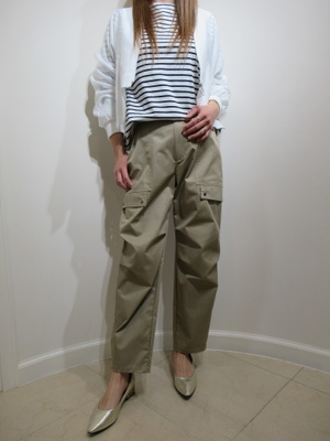 (春のコーデ・・・デイリーもおしゃれに)春は外に出かける機会が多くなりますね。普段のコーデも少し遊びをプラスしたパンツで・・・一枚薄手のブルゾンがあると温度調整も重宝しますね。