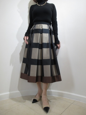 (エレガントなスカートで)エムズグレーシーのエレガントなスカートを中心に。トップスはシンプルニットで。秋のお出かけスタイル。