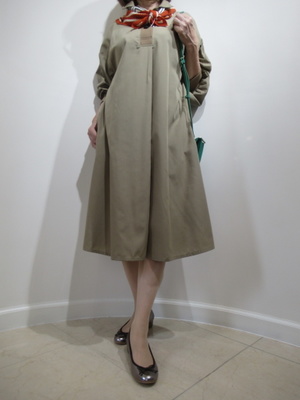 (Aラインのカジュアルワンピース)裾にかけてAラインに広がるワンピースはカジュアルタイムにもちょっとかわいいスタイルで。アクセントにスカーフを襟元に巻いてみました。