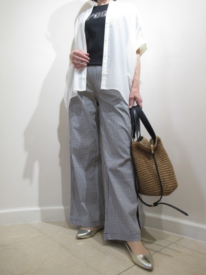 (半袖の羽織りになるブラウス)この季節から夏までは一枚羽織が欲しいもの半袖のざっくりしたシャツはオーバーサイズなのでパンツスタイルにもよく合いますね。