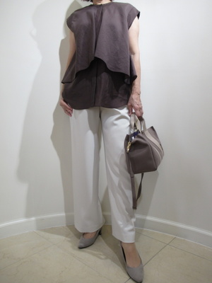 (デザインブラウスも秋色で)茶系が流行るこの秋。ブラウスに取り入れてみました。フレンチなのでこの季節なら一枚で着用してもOKですね。