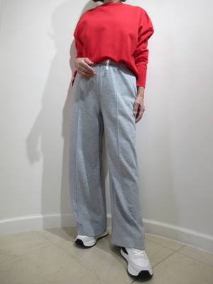 (赤のニットでおしゃれに)デイリーに活躍できるスウェットのパンツを赤のニットでおしゃれに着こなしてみました。大人のカジュアルには色も大切。