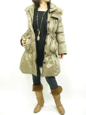 ボリュームダウンもウエストが絞れるタイプならスタイリッシュに。モカ色が上品です!スタイリッシュ度60%、アクティブ度40%。