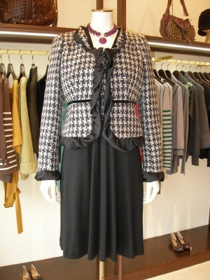 ツイードのシャネルカラーは、それだけで存在感があります。ちょっとあらたまった席にも大丈夫です。黒のストッキングで!エレガンス度100%
