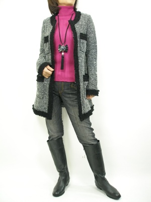 ツイードジャケットにはデニムがこの冬定番になりましたね。真冬にはビビッドなタートルを効かせて!スタイリッシュ度90%、アクティブ度10%。