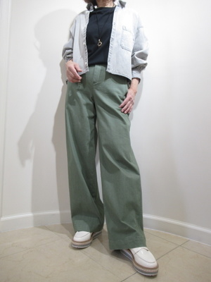 (グレーのGジャン風シャツを羽織って)ネイビーが王道なGジャンもフレッシュなグレーを用いるとオシャレ度がアップしますね。また、ジャケットまでのかっちり感はなく、シャツとしても着れるのが嬉しい。花見などお出かけの多い春のコーデに合わせて。