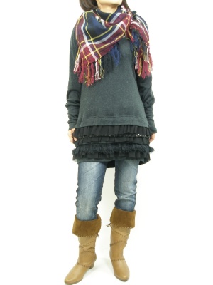 裾のティアードが可愛いカットソーですが、ジェットレーベルだと甘すぎないのが魅力。ぐっとカジュアルに着こなしたい!アクティブ度80%、スタイリッシュ度20%。