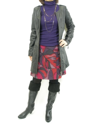 ウォーム感たっぷりのスカートとタートルで冬らしいシックなスタイルに。レザーのコートで少し辛口に仕上げて!エレガンス度60%、スタイリッシュ度40%。