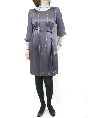 フォーマルにも使える光沢ワンピもタートルをインすれば少しカジュアルに!エレガンス度70%、スタイリッシュ度30%。