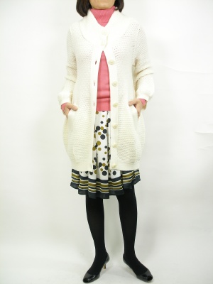 お正月を過ぎたら明るめのカラーが気になりますね。ミドルゲージの白のロングカーディガンは春まで使えます!フェミニン度100%。