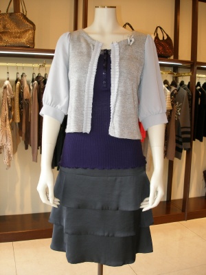 パフスリーブのティアードスカートの甘口コーディは、ぴったりキャミで引き締めます!