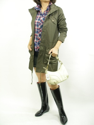 ミニ丈のデニムをカジュアルなフード付きコートで合わせると大人の女性にも抵抗なく合わせてもらえますよ!アクティブ度100%。