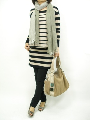 ニットワンピにレギンスは、この春の定番になりそう。ストールを巻くとさらにスタイリッシュ!スタイリッシュ度90%、アクティブ度10%。