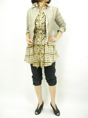 | 春らしいカラーのチュニックシャツは、やっぱりデニムで。ジャケットを羽織ってもカワイイですね!アクティブ度90%、フェミニン度10%。 |