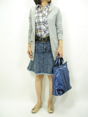 チェックのシャツには、やっぱりデニムを合わせたい。ロングパーカも細身ならルーズになりすぎません!アクティブ度100%。